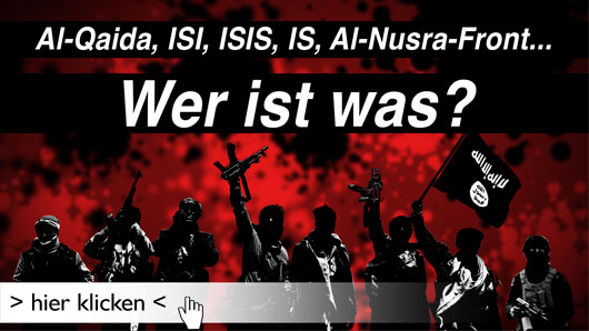 ► Die plötzliche Ziel- und Namensänderung von Al-Qaida, zu ISI, zu ISIS, zu IS – alles nur Zufall oder vielleicht doch ein gezielter weltweiter Putsch durch aggressive Kriegstreiber? Während die Leitmedien kategorisch den ganzen Islam verunglimpfen, geht Kla.TV den wahren Ursachen und Zielen dieser Terrororganisationen auf den Grund und zeigt, wie die globalen Drahtzieher erneut Konfliktpotential als Waffe zur Destabilisierung nutzen. Heute noch ansehen und weiterverbreiten!