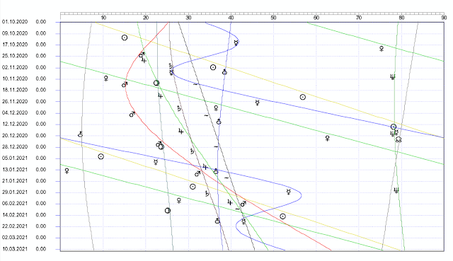 Sobald Mars ab 14.11. wieder → läuft, sollte das Aufräumen und Säubern beginnen - auch ab- hängig davon, ob es Trump gelungen ist, den SES auszuschalten. Und dabei wird er nun scho- nungslos vorgehen müssen, das kann auch bis Weihnachten andauern (Mars Qu. Pluto 23.12.). Vom Ausgang der Geschichte werden wir alle betroffen sein, denn ohne Trump als Präsident können wir die deutsche Souveränität für längere Zeit abhaken.